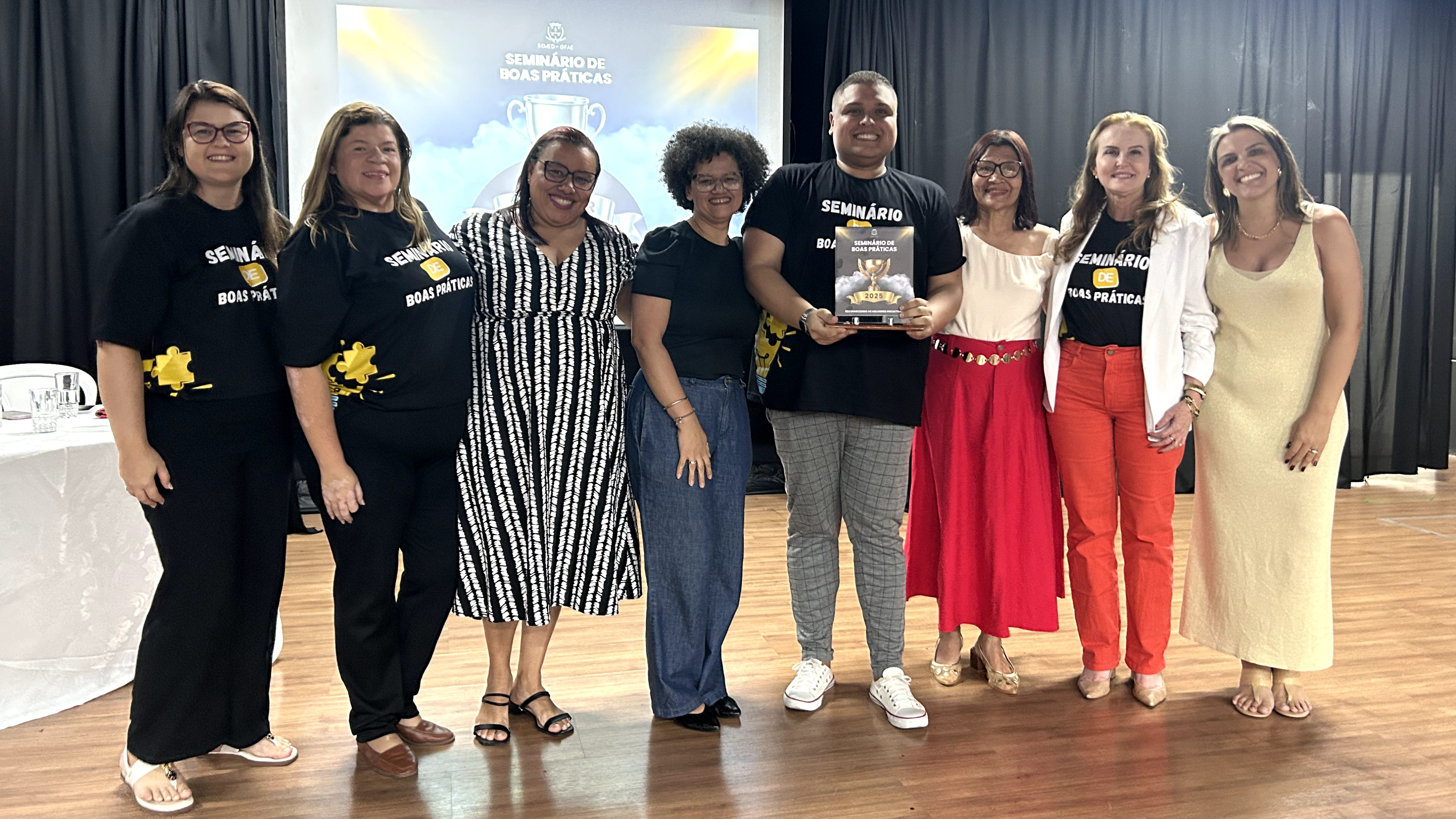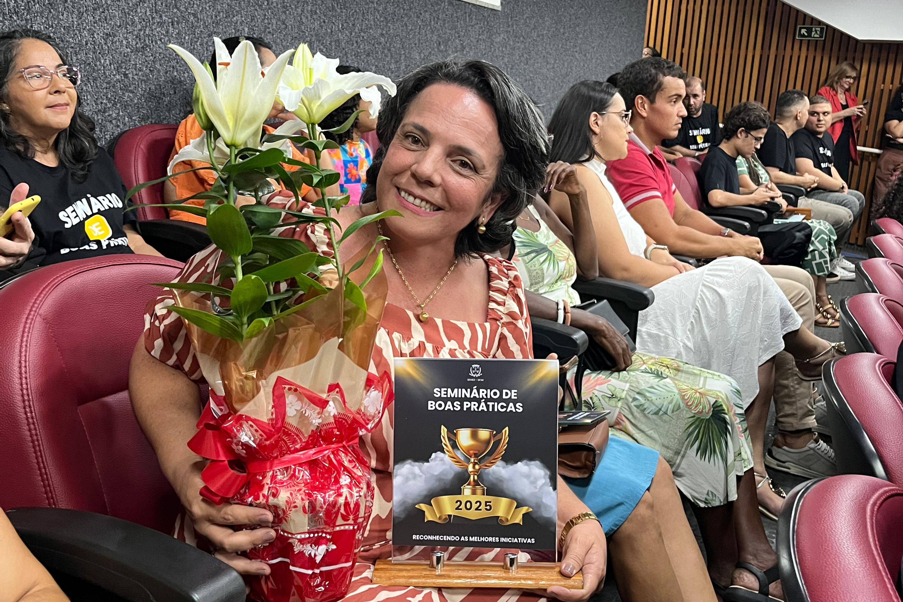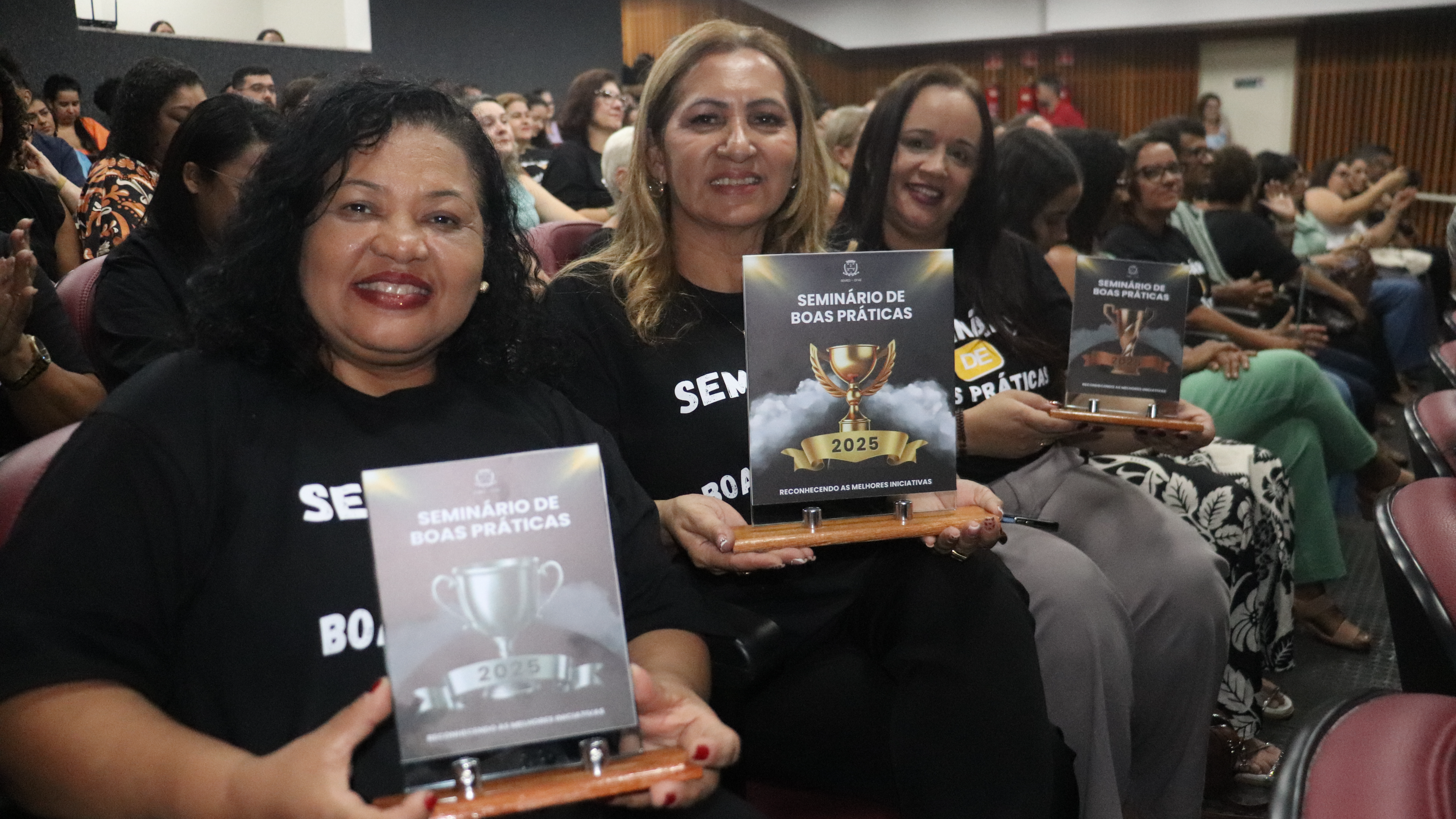 Realizado em clima de gala, o evento contou com entrega de troféus premiando projetos de excelência desempenhados diariamente nas escolas. Nesta edição, as categorias premiadas contemplaram projetos da Educação Infantil, Ensino Fundamental, Educação Inclusiva, Gestão Escolar, Inovação e Formação Continuada. Os homenageados receberam seus troféus sob aplausos do público, simbolizando o reconhecimento de todo o município.