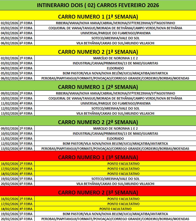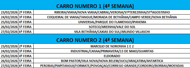 Prefeitura de Viana, por meio da Secretaria Municipal de Saúde (SEMSA), divulga nova programação de combate a arboviroses, como Dengue, Zika e Chikungunya. A rota será feita durante a noite, até o dia 28 de fevereiro.