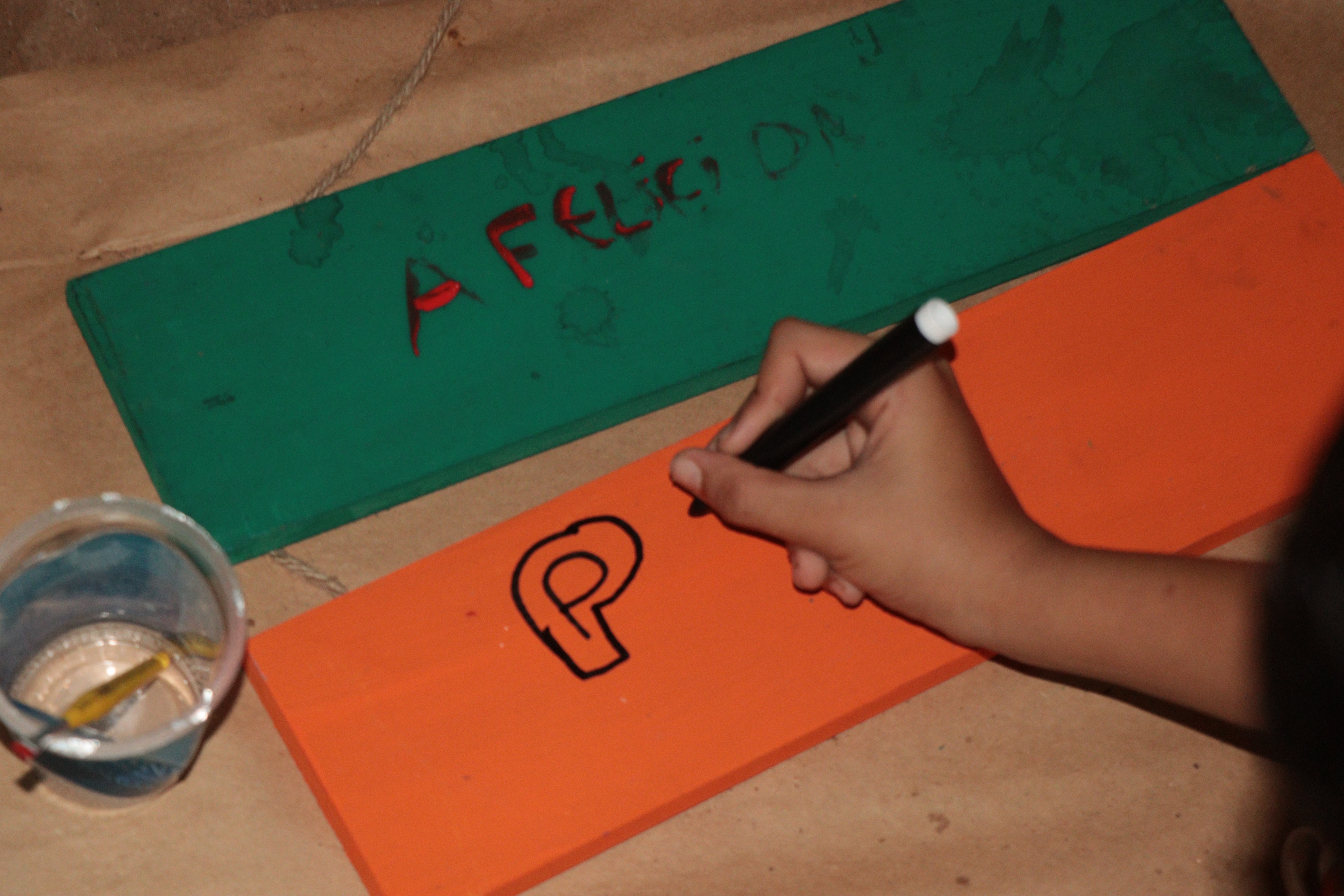 Um dos momentos mais aguardados da atividade é a oficina de pintura, em que os alunos personalizam as placas de madeira. Além de estimular a criatividade, a ação reforça o papel de cada um na preservação dos recursos naturais.