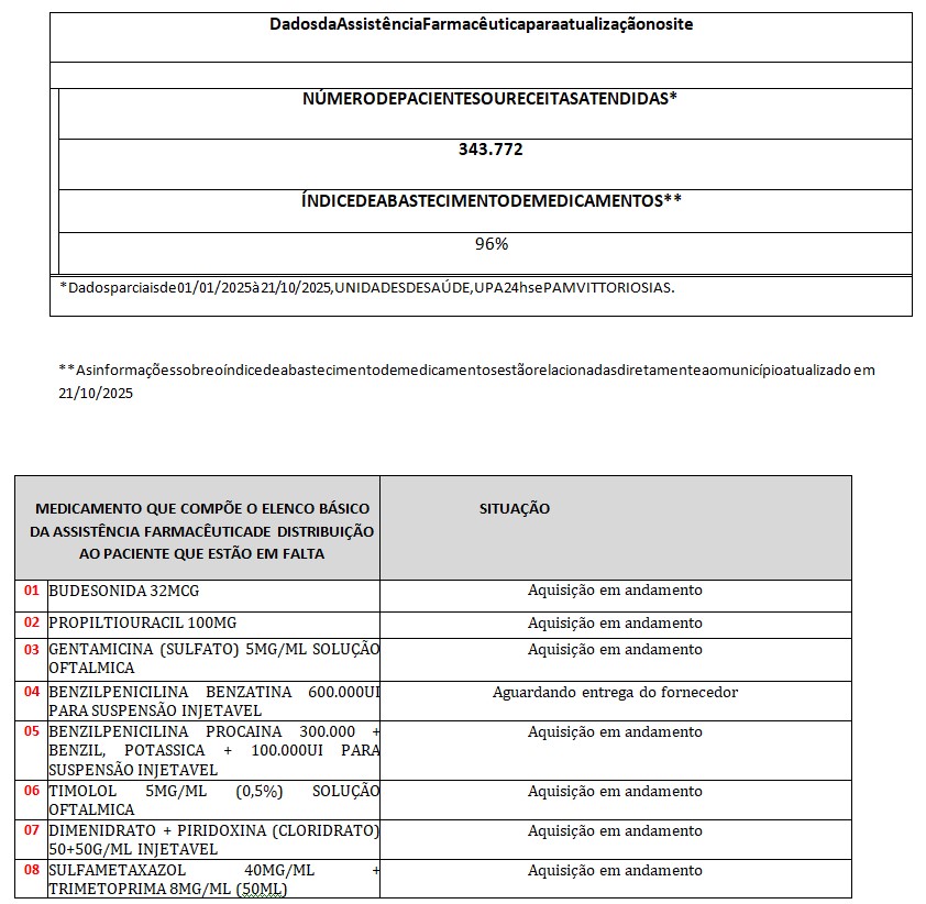 Itens em falta: 3 (Alta e média complexidade - PAM e UPA)