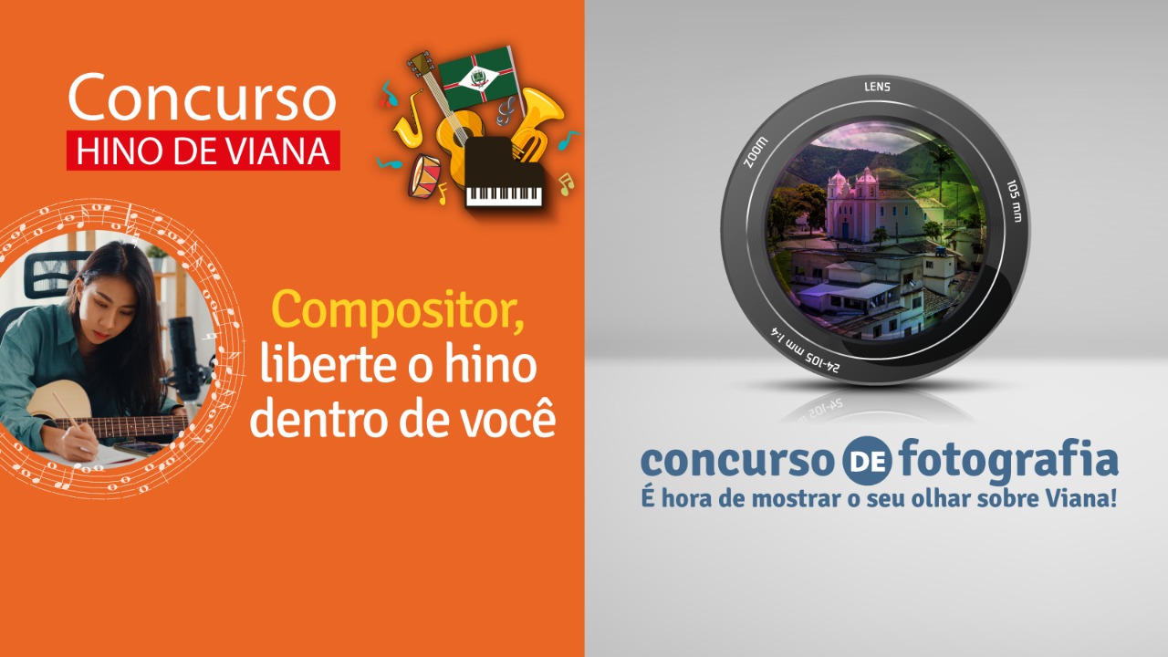 Criatividade à flor da pele e mãos à obra! Que tal criar o Hino da cidade de Viana, e com isso manifestar o espírito cívico e de amor ao município, reafirmando a importância da preservação das suas tradições, sua cultura, belezas naturais, seu povo, origem, economia e projeção futura. Também vale participar do Concurso de Fotografias Afetivas “Viana, a cidade é você! - 159 anos de histórias, belezas e afetos”, que escolhe fotografias que retratem a beleza e o cotidiano do município de Viana.
